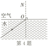 4. (2023·广安)如图所示,一束光从水里斜射入空气中,请在图中画出反射光线和大致的折射光线。