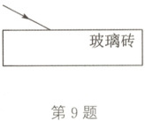 9. 一束光射向一块玻璃砖(如图),并穿过玻璃砖,请你画出这束光进入玻璃砖和离开玻璃砖后的光线。