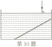 10. 将一平面镜斜放在装有水的水槽中,有一束光线垂直射向水面,如图所示,请画出这束光线在水中传播至最后射出水面的光路图。