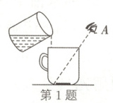 1. 小明给弟弟变了个魔术,他将装有一枚硬币的杯子放在弟弟面前,如图所示,弟弟在A处看不到硬币,这是因为光沿