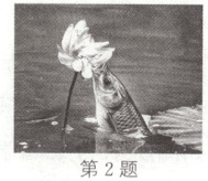 2. (2024·泰州靖江期中)如图所示为一条鱼跃出水面,咬食荷花的画面,鱼在水中看到荷花,此时光从