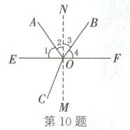 10. (2024·太原小店校级段考)一束光从一种介质斜射入另一种介质中时的传播路径,如图所示。EF是两种介质的交界面,NM为法线。下列说法错误的是(