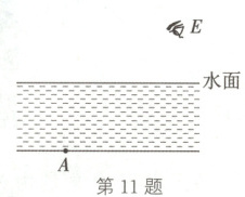 11. (2024·广西)了解水深,防止溺水。人在岸边看水池池底的发光点A,感觉该点的位置升高,池水看起来比实际的浅。请在图中画出从A点发出的光进入人眼E的光路图。