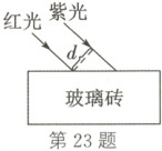 、蓝。如图所示,一束紫光和一束红光平行入射到一块长方体玻璃砖上,它们之间的距离为d,请推测:经玻璃砖折射后,红光和紫光之间的距离会