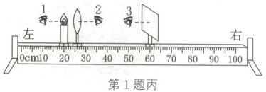 (填“1”“2”或“3”)处能观察到蜡烛正立