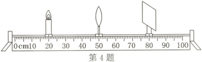 4. (2024·合肥模拟)如图所示,烛焰在光屏上刚好成清晰的像。透镜不动,将蜡烛移至$30$cm刻度处后再移动光屏,在光屏上能观察到(