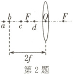 2. 某同学做“探究凸透镜成像的规律”实验时,所用凸透镜的焦距为$f$,保持凸透镜位置不变,如图所示,先后使烛焰位于$a$、$b$、$c$、$d$四点,并分别调整光屏的位置。关于$a$、$b$、$c$、$d$四点的成像情况,他归纳出下列说法,其中错误的是(