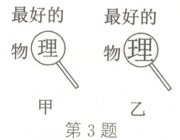 3. 如图所示,放大镜到图片之间的距离为物距,从图甲到图乙的过程中,所成的