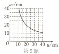 5. 某班同学在“探究凸透镜成像规律”的实验中,记录并绘制了像到凸透镜的距离$v$跟物体到凸透镜的距离$u$之间关系的图像,如图所示,下列判断正确的是(