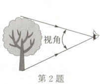 2. 人眼看同一个物体,会出现“近大远小”的现象,这和物体与人的眼睛所成视角的大小有关,如图所示,同一个物体离人眼越远时,视角越