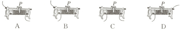 7. 如图所示,给出了滑动变阻器四种接入电路的结构示意图。其中,当滑片P向左滑动时,使连入电路中的电阻变大的接法是(