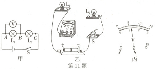 11. 如图甲是“探究串联电路电压的规律”的实验电路图。