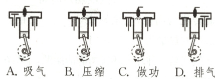 9. 下列依次为四冲程内燃机工作过程中四个冲程的示意图,这四个冲程中活塞和曲轴的位置,进气门、排气门的开闭情况和活塞的运动情况有错误的是(