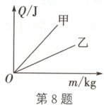 8. (2024·太原杏花岭校级段考)甲、乙两种燃料完全燃烧放出的热量与其质量的关系图像如图所示,则下列分析正确的是(