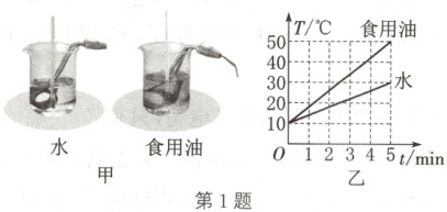 1. (2024·太原杏花岭校级段考)为了比较水和食用油的吸热能力,小明用如图甲所示的装置做了实验。