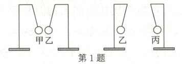 1. (2024·忻州忻府校级期中)甲、乙、丙三个轻质小球用绝缘细绳悬挂,相互作用情况如图所示,如果丙带正电荷,则甲(