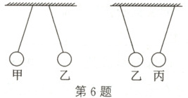 6. (2024·大同期中)用与丝绸摩擦过的玻璃棒接触轻质小球甲,使其带电。甲和乙、乙和丙靠近时会出现如图所示的现象,则乙、丙小球的带电情况是(