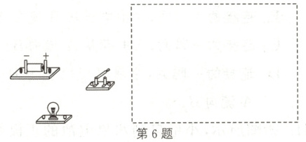 6. 用笔画线代替导线将图中的电源、灯泡、开关连接起来,使开关闭合后灯泡能发光,并在虚线框内画出对应的电路图。