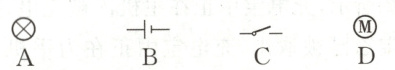 1. 我们在画电路图时要用统一的元件符号,下列符号中表示电源的是(