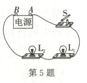 (3)受上面实验现象启发,为了让两灯泡同时熄灭,小明认为可以不断开开关,而用一根导线同时连接图中灯泡$ L_{2} $左端和灯泡$ L_{1} $右端的接线柱,根据所学知识,我们应该告诉小明