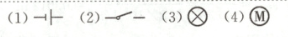(1)电池。(2)开关。(3)灯泡。(4)电动机。(5)相连的导线。