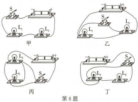 8. 如图所示,实验小组的同学连接了四个电路来探究开关的控制作用,下列判断正确的是(