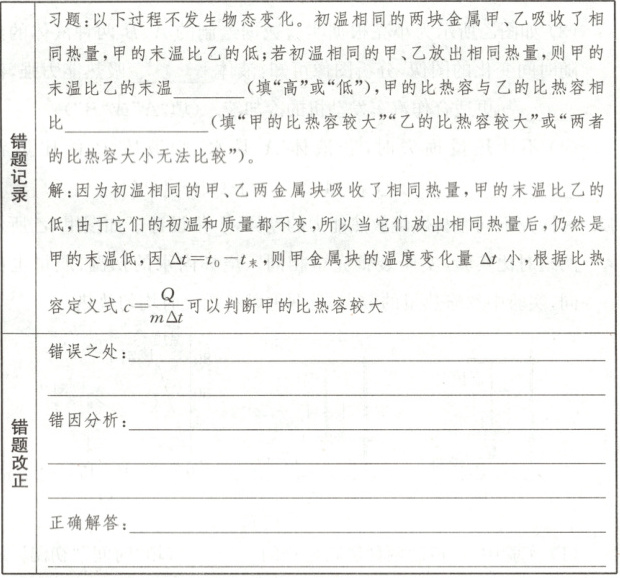 15.甲的末温低、甲的比热容较大 未弄清吸热和放热过程中温度变化量与末温的关系、未清楚甲、乙的质量关系 甲的末温高、两者的比热容大小无法比较
