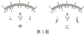 3. 小莹同学测量电流时,连接好电路,闭合开关,发现电流表指针向左偏转至如图甲所示位置,原因是电流表