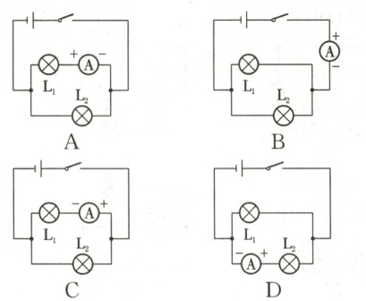 6. (2024·临汾襄汾模拟)下列电路图中 L₁、L₂两灯规格不同,能测出通过灯 L₁电流的电路是(