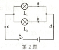 2. 创新小组利用如图所示电路,探究并联电路中电流的关系。L₁与L₂是两个不同规格的小灯泡,闭合开关后,通过a、b、c、d四处电流的大小关系正确的是(