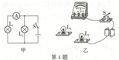 4. 请按如图甲所示的电路,用笔画线代替导线,将图乙的实物电路连接完整。