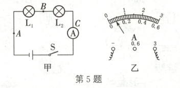 5. (2024·吕梁孝义段考)如图甲是某同学探究“串联电路中电流的规律”的实验电路图。