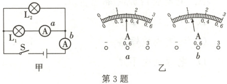 3. (2024·太原迎泽校级段考)如图甲所示电路,当开关S闭合后,电流表示数如图乙所示,其中a电流表测量的是通过