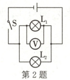 2. 如图所示,闭合开关 S 后,电压表的示数为 2.4 V,则灯 L₂ 两端的电压为