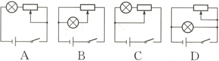 9. (2024·朔州期中)下列各电路图中当开关闭合后,能利用滑动变阻器改变灯泡的亮度,直至完全熄灭,又不会造成事故的电路是(