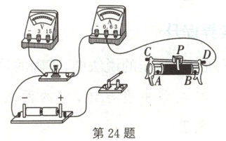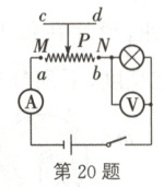 20. (2024·朔州期中)如图所示的电路中,若要求滑动变阻器的滑片P向右移动时,电流表的示数减小,接到M、N之间的接线柱是(