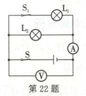 22. 如图所示,电源电压不变。当开关S₁断开时,电压表的示数