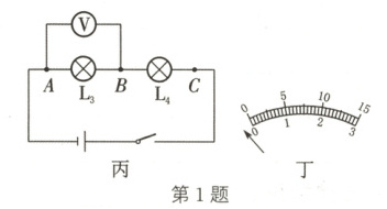 (9)小丽设计了如图戊所示的电路来探究并联电路中电压的规律。