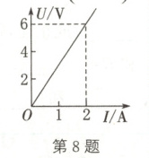 8. (2023·天津)定值电阻$R$的$U - I$关系图像如图所示,当该电阻两端电压为$3V$时,通过它的电流为(