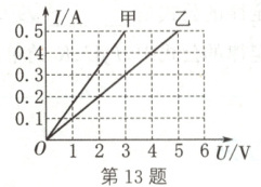 13. 如图所示是电阻甲和乙的$I-U$图像,由图可知:$R_{甲}$