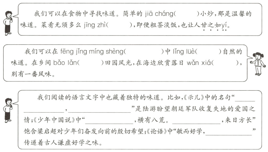 1. 同学们首先围绕“寻味”发表了各自的看法,一起参与讨论吧! (13.5分)