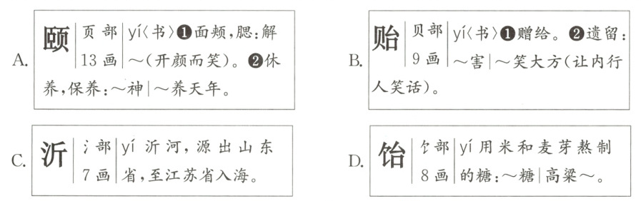 (2)同学们不确定“甘之如 yí”的“yí”字怎么写,查阅字典后,正确的一项应该是 (