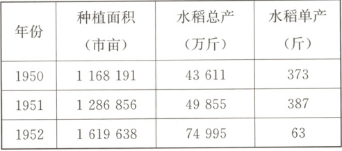 6. 下表为新中国成立后安徽某县水稻种植面积、总产、单产统计表。该表数据的变化主要得益于 (