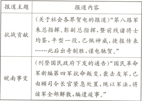 (2)变化:全国抗战爆发后,八路军取得了平型关大捷,《申报》高度赞扬,树立了共产党积极抗战的形象;皖南事变发生后,报道为国民党发声,对新四军加以指责,有失偏颇。(4分)