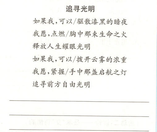 (3)“人应该诗意地栖居在大地上。”翱翔组的同学创作了一首《追寻光明》,请你阅读诗歌,并进行仿写。