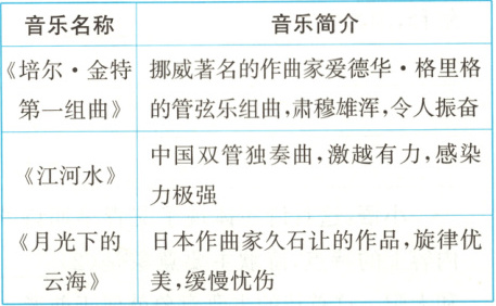 1. 示例一:我选择朗读《大堰河——我的保姆》,配乐《月光下的云海》。《大堰河——我的保姆》通过对乳母大堰河的追思,抒发了诗人对大堰河的怀念、感激和赞美之情,激发人们对旧社会广大劳动妇女悲惨命运的同情。所配乐曲旋律优美,缓慢忧伤。两者相辅相成。 示例二:我选择朗读《鱼化石》,配乐《江河水》。《鱼化石》是诗人艾青“归来”之后创作的一首独特的诗歌,借助一种生物被无故尘埋的悲惨事实,抒发了诗人对逝去生命的祭奠与悼惜之情,具有巨大的艺术感染力。所配乐曲激越有力,感染力极强。两者相映相称。 示例三:我选择朗读《黎明的通知》,配乐《培尔·金特第一组曲》。《黎明的通知》以黎明的口吻热切地呼唤一切事物来迎接美好新世界的到来,充满向上的精神和对新社会新生活的坚定信念。所配乐曲肃穆雄浑,令人振奋。两者相得益彰。