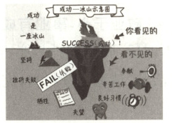 6. 青少年正处于拔节育穗的关键期,要养成“胜不骄,败不馁”的稳定情绪,就需要正确认识眼前的成绩与背后的付出之间的关系。请你仔细观察“成功—冰山示意图”,并向同学们介绍图片内容。(不少于80字)(5分)