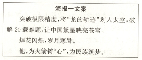 (2)学校宣传组拟举办“大国工匠”人物展。请你仿照海报一文案,为海报二配一段文案。