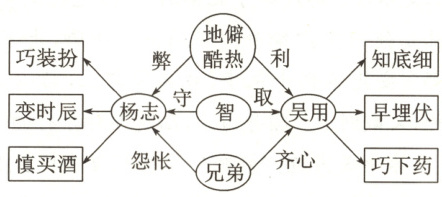 10. 在“说水浒故事”活动中,小明画出了下面的思维导图。请你根据这张思维导图,分析吴用“智取生辰纲”取得成功的原因。
