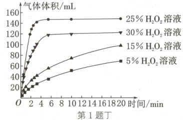 (4)图丁中30%H2O2溶液比25%H2O2溶液产氧量少,可能的原因是________________。